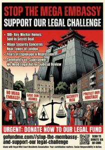 Please donate and share Tower Hamlets residents’ crowdfunding campaign for Judicial Review of the approval for China’s Mega-Embassy